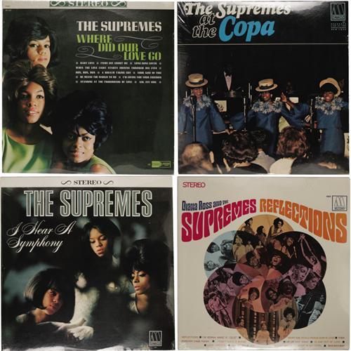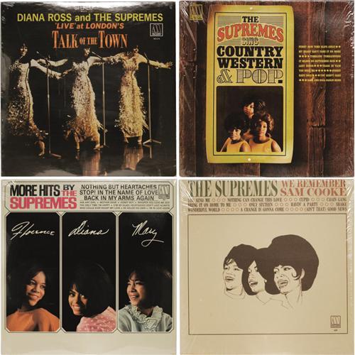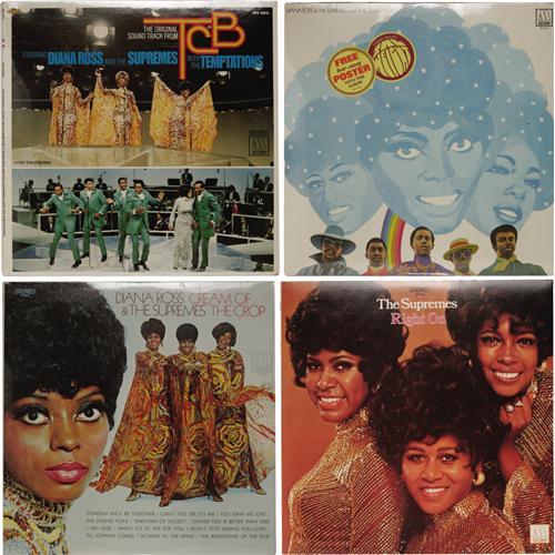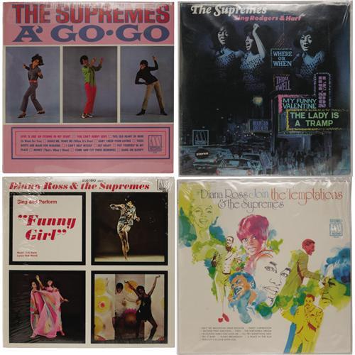 <B>The Supremes LP Group of 16 - Many Still Sealed (Motown, 1964-70).</B></I> What a stash o' wax from the most successful "girl group" of all-time. The Supremes rank as Motown's biggest act of the '60s, and only the Temptations' phenomenal longevity precludes the Supremes from being the most successful Motown group of all-time. In little more than five years, they had 12 #1s and 18 Top Ten hits on Billboard's Hot 100, most of which are included in these albums. And speaking of the albums, all but two of the 16 here are still sealed! Grades for each LP are GM-MT 10/ Still Sealed (ss), and all are Mono except as noted: "Where Did Our Love Go" (621 Stereo, 1964) in MT 9/ ss; "The Supremes Sing Country Western & Pop" (625, 1965) in MT 9sw/ GM-MT 10; "More Hits By The Supremes" (627, 1965); "We Remember Sam Cooke" (629, 1965); "At The Copa" (636, 1965); "I Hear A Symphony" (643 Stereo, 1966); "Supremes A' Go-Go" (649, 1966) in MT 9/ ss; "The Supremes Sing Rodgers & Hart" (659, 1967) in MT 9/ ss; "Reflections" (665 Stereo, 1968); "Funny Girl" (672 Stereo, 1968); "Live At London's Talk Of The Town" (676 Stereo, 1968); "Diana Ross & The Supremes Join The Temptations" (679 Stereo, 1968); "TCB" (682 Stereo, 1968) in MT 9/ ss; Diana Ross & The Supremes with The Temptations "Together" (692 Stereo, 1969); "Cream Of The Crop" (694 Stereo, 1969); "Right On" (705 Stereo, 1970) in MT 9/ MT 9. <I>From the GRT Collection</B></I>.<BR><BR><b>Shipping:</b> Recordings (<a target="_blank" href="http://www.heritageauctions.com/common/shipping.php">view shipping information</a>)