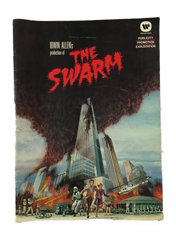 The Swarm (Warner Bros.,1978). Publicity Promotion Exploitation Production Book. This rare and colorful book includes: cast production photos, effective newspaper and magazine tie-ups and merchant tie-ins and an Ad Supplement insert. Starring: Michael Caine, Katharine Ross and Richard Widmark. There are creases, paper loss and minor edge wear damage. Very Fine. (13.5" X 18.5").