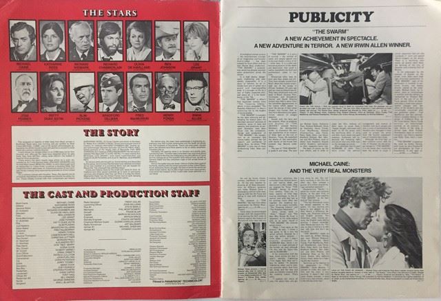 Warner Brothers release of a Publicity Promotion of "The Swarm" (1978), this large magazine with everything you need to know about the Irwin Allen production. Individual articles about each character and their role in the movie. This is a great collector's piece for horror fans. (18x14).