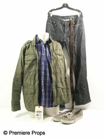 Wally (Jason Bateman) screen worn, hero, long sleeve jacket with pockets on the front, blue and green plaid button up the front long sleeve shirt, brown belt, blue denim jeans, and canvas lace up the front tennis shoes. Includes wardrobe tag!