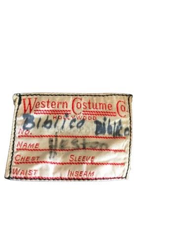 The Ten Commandments (1956) - A Charlton Heston (played the actor: Moses) test robe from Cecil B. DeMille's epic "The Ten Commandments." Custom-crafted by the legendary Western Costume Company, this ornately designed robe features a paisley print and exhibits signs of wear from its history. The interior collar displays a Western Costume Co. label with the intriguing inscription "Biblico Biblico" and "Heston." Though ultimately not used in the final film, this unique robe remains a testament to the meticulous costume design process of this classic Hollywood production.