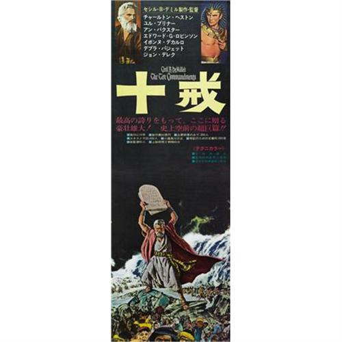 <B>The Ten Commandments (Paramount, 1956).</B></I> Japanese STB (20" X 58"). While critics have argued the film's claim of authenticity, there is no debating the popularity of "The Ten Commandments" with audiences of all faiths. Using state of the art special effects for its day, the film dazzled audiences with the "parting of the Red Sea" scene, a feat that won the movie an Oscar for special effects in 1956, beating out "Forbidden Planet" for the award. This rolled, original release Japanese poster features great images of Charlton Heston, casting down God's Law upon the people of Israel, and Yul Brynner as his brother-turned-archnemesis Ramses. There are a few tiny edge tears and light wrinkling but they in no way distract from the beauty and power of the artwork. Rolled, Near Mint. <BR><BR><b>Shipping:</b> Rolled Material (<a target="_blank" href="http://www.heritageauctions.com/common/shipping.php">view shipping information</a>)