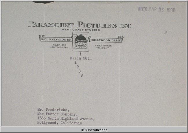 From the Max Factor Files / "The Texans" / Released August 12, 1938 / Paramount Pictures / "After the Civil War, an ex-Confederate soldier faces new battles, including the elements and a carpetbagger intent on destroying him." / Starring: Joan Bennett, Randolph Scott, May Robson, Walter Brennan, Robert Cummings, Raymond Halton and Francis Ford / Folder contains letter from Paramount Pictures dated March 28, 1938 to Mr. Fredericks of Max Factor & Co. rejecting the wig rental proposal, (1) 8 x 10 Black & White Production Still {Max Factor Collection}
