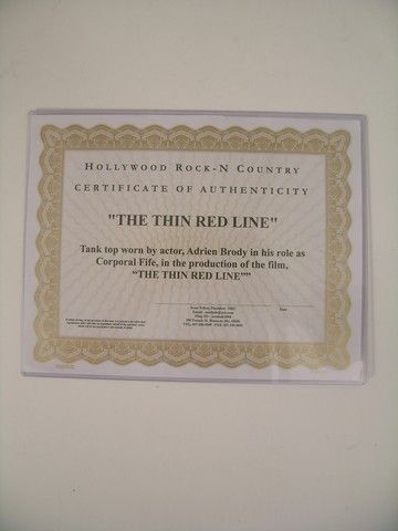 From controversial director Terrence Mallick's unrelenting epic (almost three hours) all star war-time remake of James Jones' classic novel "The Thin Red Line" (1998) this is Cpl. Fife's (Adrian Brody) tank top.