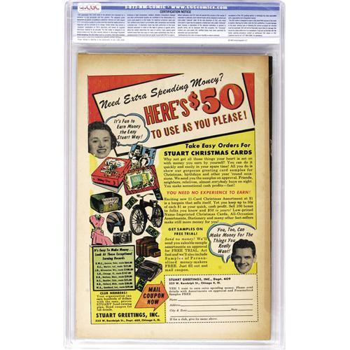 50. Since we cannot examine encapsulated notes or comics, they are sold "as is" without our grading opinion, and may not be returned for any reason. Auctioneer shall not be liable for any patent or latent defect or controversy pertaining to or arising from any encapsulated collectible. In any such instance, purchaser's remedy, if any, shall be solely against the service certifying the collectible.