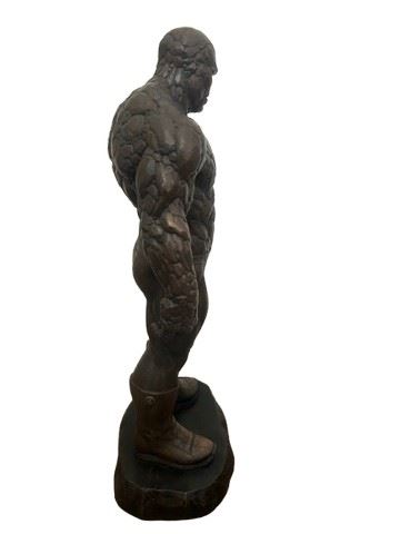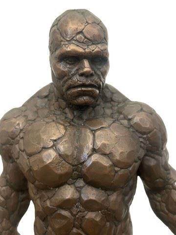 Fantastic Four The Thing (ring the powerhouse of the Fantastic Four, Ben Grimm—The Thing—to your collection with this magnificent 1:4 Scale Statue. This premium piece perfectly captures the rugged strength and unmistakable rocky texture of the beloved Marvel hero.The statue is crafted using the high-quality Cold Cast Bronze process (also referred to by the patented Luminore process). This technique mixes actual bronze metal powder with a polymer resin, which is then cast and hand-finished. The result is a substantial, highly detailed sculpture that possesses the look, feel, and luster of solid bronze without the extreme weight or expense of traditional foundry casting. (20"x10"). Oversized item. Third party shipping required.
