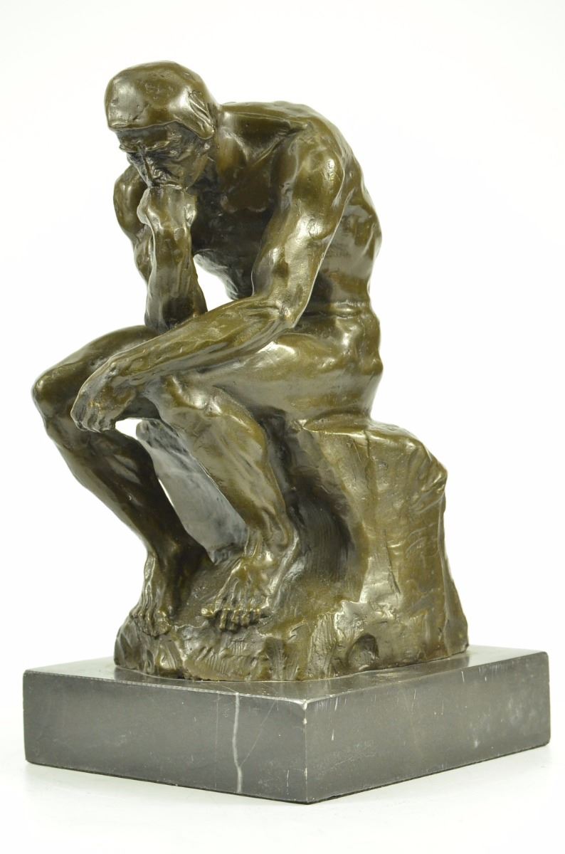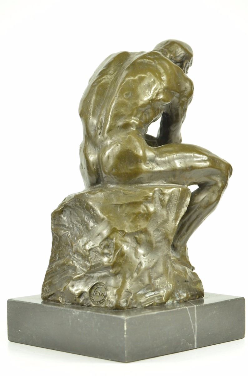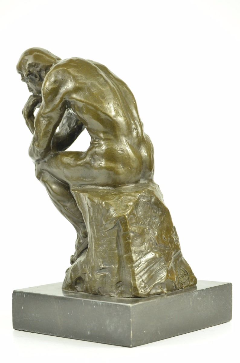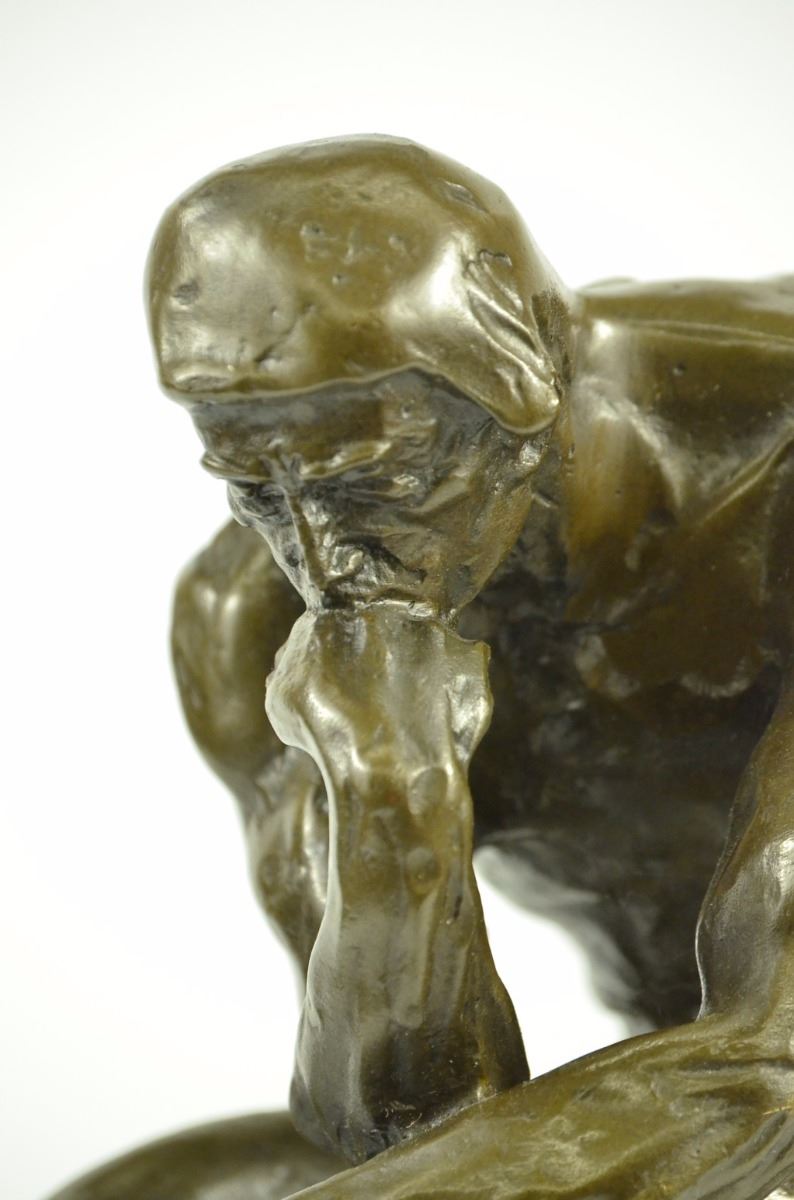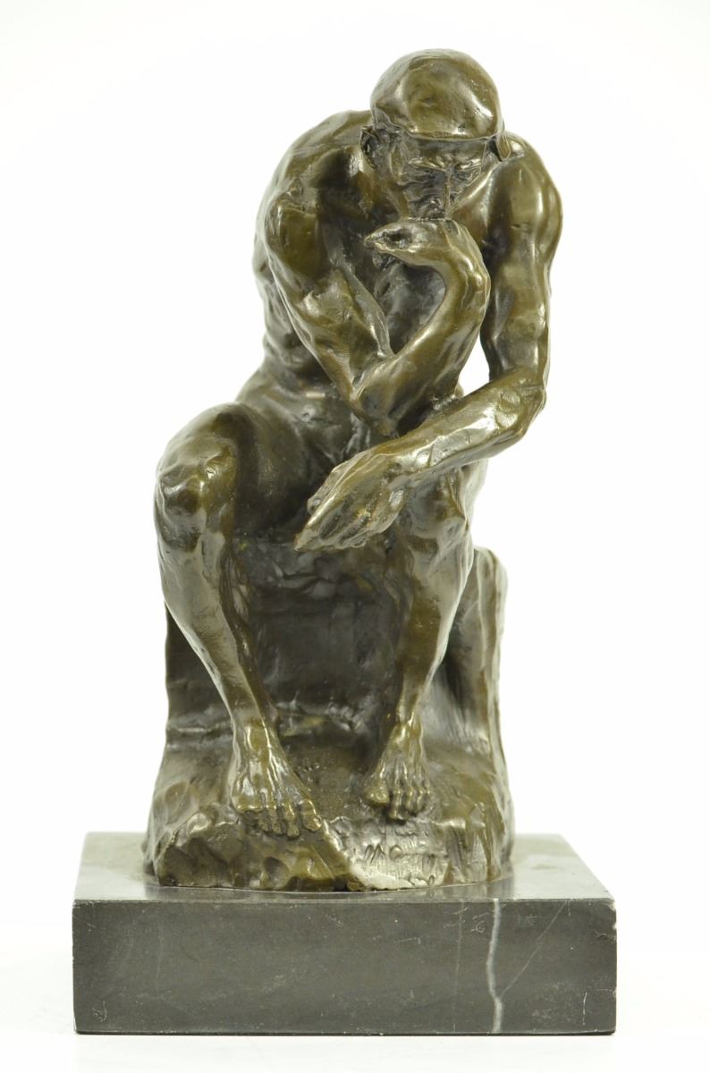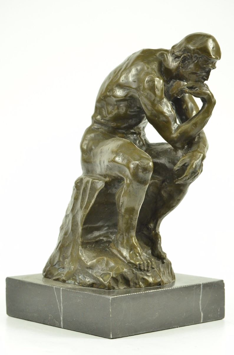 Often Used As A Symbol Of Philosophy, The Sculpture Of A Man In Deep Thought Is Quite Popular Across The World. The Man Is Deep In Thought Contemplating An Internal Conflict That Has Been Plaguing His Mind. He Is Leaning On His Right Fist With His Left Arm Laying On His Thighs While Sitting On A Large Rock. The Detail In This Piece Highlights The Man's Musculature And Facial Features. It Is 100% Bronze Cast Using The Lost Wax Method And Is Set On A Black Marble Base. Bronze Dimensions With Marble Base: Height 12 X Width 6 inches. Weight: 13 Lbs.