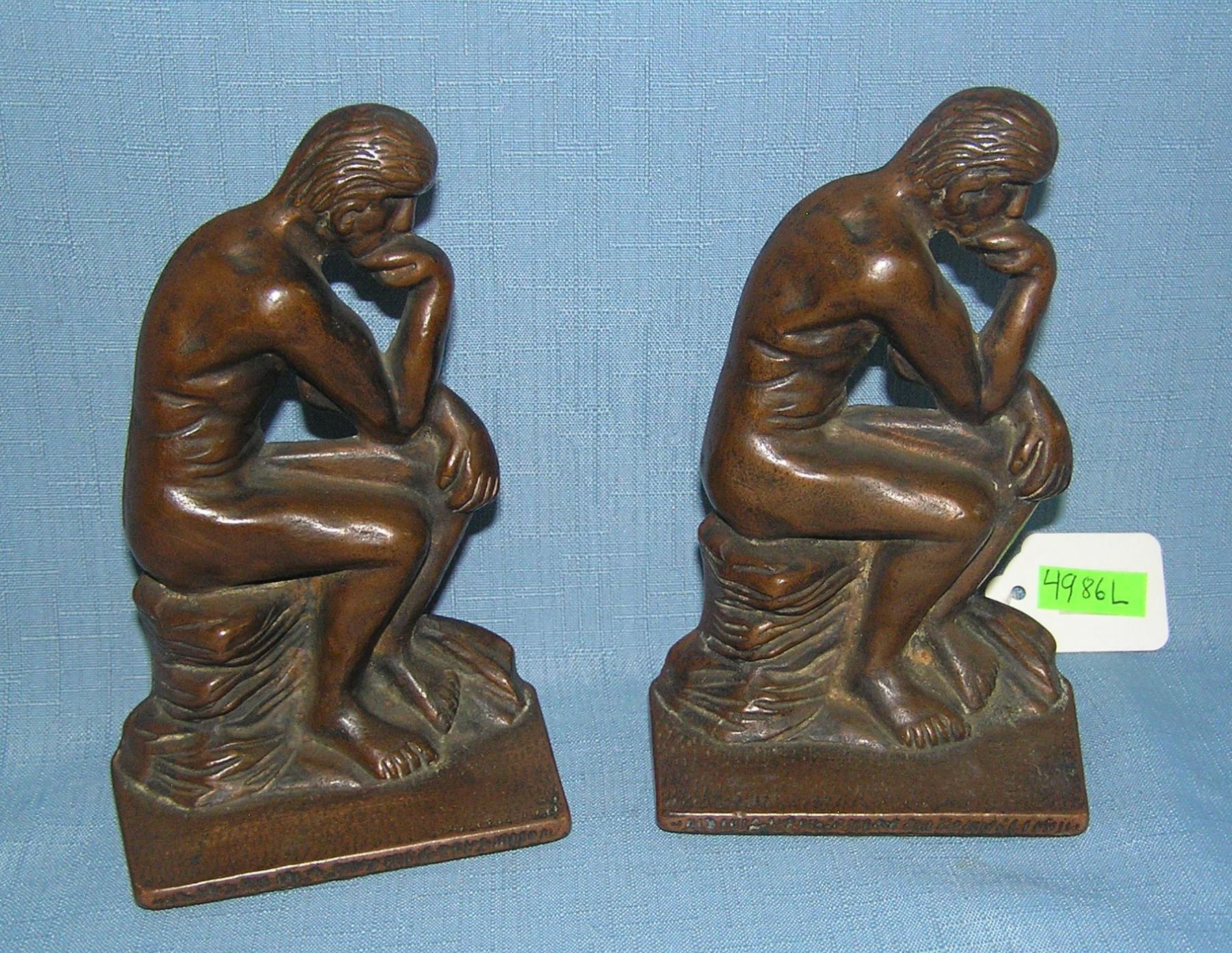 The Thinker solid bronze figural book ends bronze sculptue figural book ends bronze sculpture by Auguste Rodin French sculptor signed Verona est. value $300.00-$350.00
