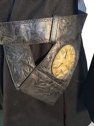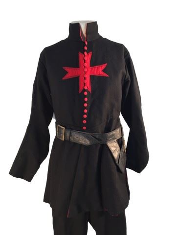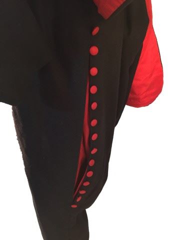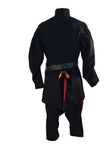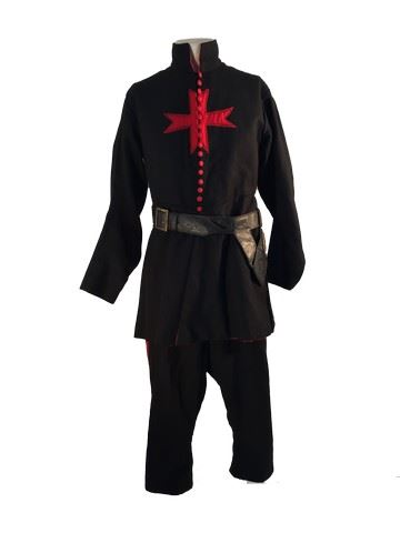 Cardinal Guard's screen worn, black mid length jacket with red buttons and red cross on the front custom made jacket. Black and red pants with open red slits on the side and buttons. Black leather belt and black leather gloves.