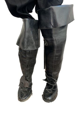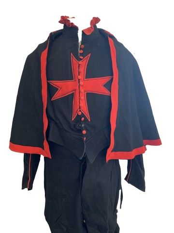 Cardinal Guard's screen worn, custom made costume with a short blazer with red cross on the front and back, black cape with red cross on the back, black pants with red buttons down the side, black leather gloves, and black leather knee high boots (approximate size 11). Last costume with cape available!