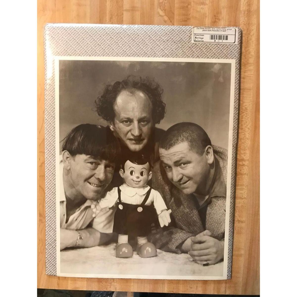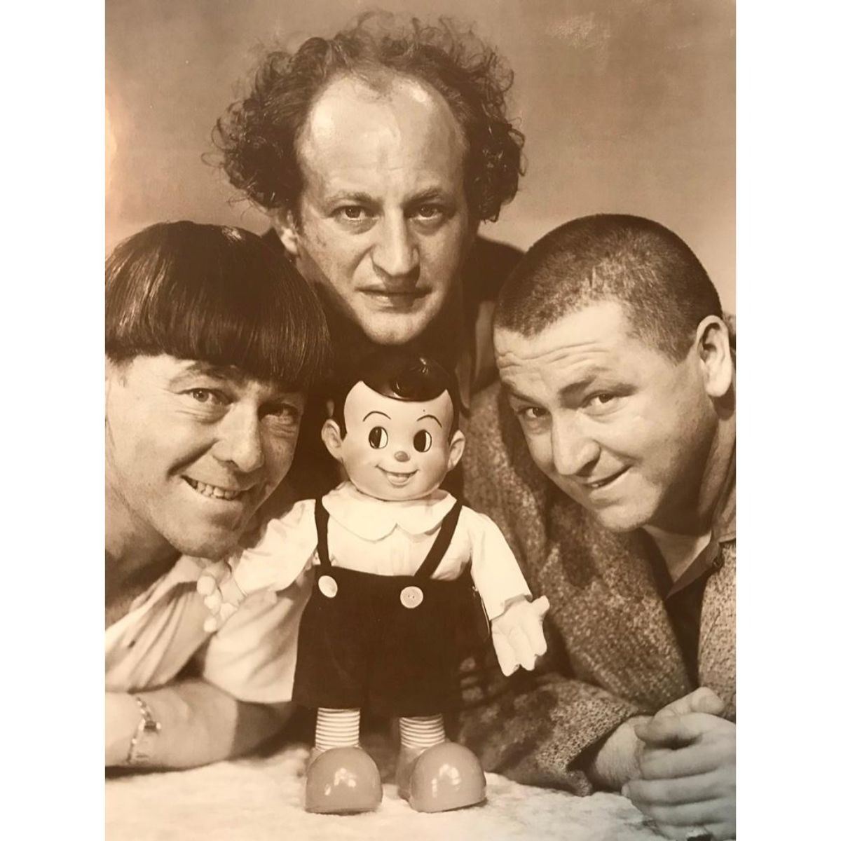 The Three Stooges sepia tone photo print, on heavy card stock. In original packaging from The American Heritage Gallery. Vintage early 1990's printing. 11" X 14".Â