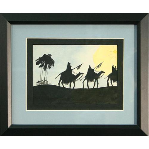 Margaret L. Neill?s original watercolor entitled, ?The Three Wisemen? is a charming rendition of the Magi?s voyage to find the Christ child by way of the shining star of Bethlehem. The Wisemen, atop their camels, are seen in silhouette along the pale blue horizon. The Star of Bethlehem is seen radiating its golden glow in the top right corner of the composition and the Wisemen appear to be following its light beyond the edges of the paper. This painting has been double matted with a back mat on bottom extending the silhouettes beyond the picture plane and a soft blue top mat which compliments the sky. The piece is mounted in a black wood frame, further reinforcing the use of high contrast and bringing the total measurements to 11 ½?x 9 ½.? The back of the piece is signed and dated by the artist and reads, ?Margaret L. Neill, Dec. 21 1936, No. 20 1936.? This is truly a wonderful painting that would be an affordable addition to any collection of Christmas themed- decor and a unique way of telling the beautiful nativity story.
