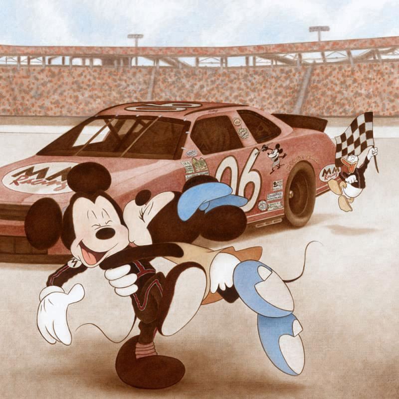 "The Thrill of Victory (Mickey Mouse)" is a limited edition giclee on canvas, numbered and hand signed by Mike Kupka. This piece is licensed by Disney Fine Art. This piece has a 2" border and may be either framed or gallery wrapped based on preference. Includes Certificate of Authenticity! Measures approx. 30" x 24" (image).
