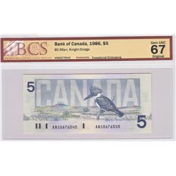 1986 $5 BC-56e-i #ANS0676545 BCS Gem UNC67.1732 - 1986 $5 BC-56e-i #ANS0676545 BCS Gem UNC67.