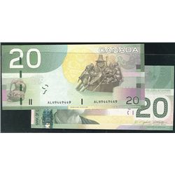 2005 $20 BC-64a #ALJ9449449 & ALH9449449. Matched RADAR number set. Crisp Choice UNC.1735 - 2005 $20 BC-64a #ALJ9449449 & ALH9449449. Matched RADAR number set. Crisp Choice UNC.