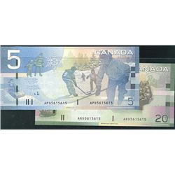 2006 $5 & 2007 $20 Matched pair RADAR numbers #APD5615615 & #ARD5615615.