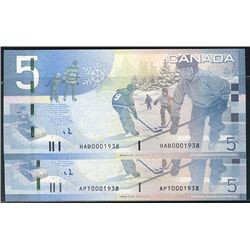 2008 $5 BC-67a #APT0001938 & HAB0001948. Matched RADAR number set. Crisp Choice UNC.1738 - 2008 $5 BC-67a #APT0001938 & HAB0001948. Matched RADAR number set. Crisp Choice UNC.