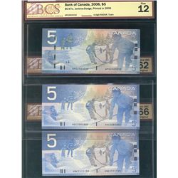 RADAR 2002 $5 BC-62a-I #HNK5515115 Gem UNC66, BC-62b #HOC5080805 CH UNC62 & 2006 BC-67a #APE2503052 F12. Lot of 3 BCS notes.