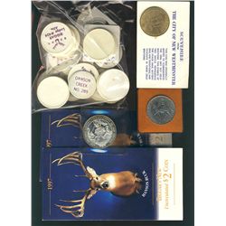 Exonumia, small lot includes Silver Proof Leif Ericson’s Landing medal with 3 typographical errors in the French text, Biggar Lodge jetons(34), Sask (