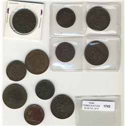 Tokens, small lot includes 11 pcs, Upper Canada(6), Province of Canada & Quebec Bank examples. VG to1742 - Tokens, small lot includes 11 pcs, Upper Canada(6), Province of Canada & Quebec Bank examples. VG to