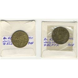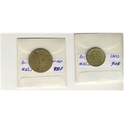 Jetons, Br:776 Nobles Hotel Hamilton, ON & Br:851 Queen’s Hotel St. Thomas, ON. Lot of 2 issues Bras1749 - Jetons, Br:776 Nobles Hotel Hamilton, ON & Br:851 Queen’s Hotel St. Thomas, ON. Lot of 2 issues Bras
