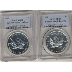 RCM 1988 & 2005 $5 SML PCGS MS67 & MS68 respectively. Lot of 2 coins.