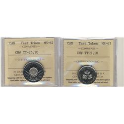 Test Token CH# TT-5,10 & TT-25.20 ICCS MS67. Lot of 2 coins.