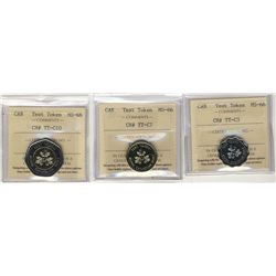 Test Token CH# TT-C3, TT-C7 & TT-C10 ICCS MS66. Lot of 3 coins.