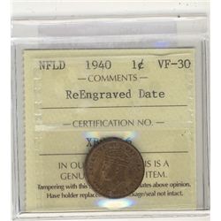 Nfld 1940 1¢ Re-eng ICCS VF30.