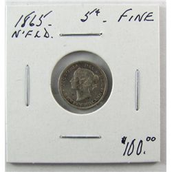 Nfld 1865 5¢ Fine. (PBA).