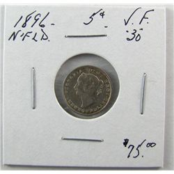 Nfld 1896 5¢ VF30. (PBA).