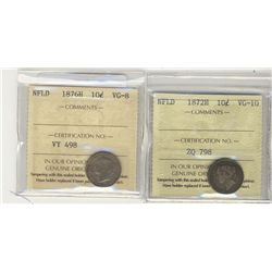 Nfld 1872H 10¢ VG10 & 1876H VG8. Lot of 2 ICCS coins.