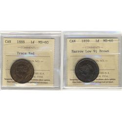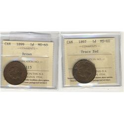 1890H & 1897 1¢ ICCS MS60BN & Tr Red respectively. Lot of 2 coins.