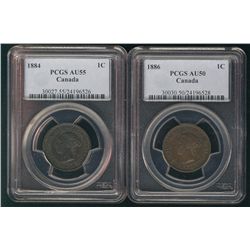 1884 1¢ AU55 & 1886 AU50. Lot of 2 PCGS coins.