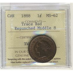 1888 1¢ Re punch middle 8 ICCS MS62 Trace Red.