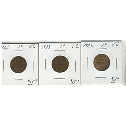 1923 1¢ VG. Lot of 3 coins. (PBA).