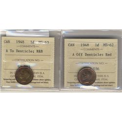 1948 1¢ A Off MS62RD & A to Dent MS63RB. Lot of 2 ICCS coins.