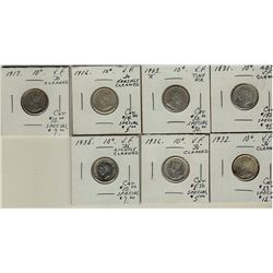 1871 10¢, 1903H, 1916, 1917, 1932, 1936 & 1938. Lot of 7 coins all VF or better with problems. (PBA).