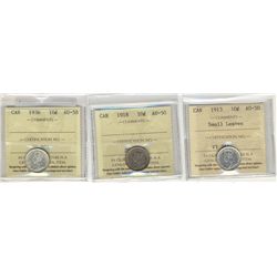 1886 - 1871 10¢, 1903H, 1916, 1917, 1932, 1936 & 1938. Lot of 7 coins all VF or better with problems. (PBA)The Canadian Numismatic Company