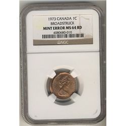 Mint Error Canada 1973 1¢ Broadstruck NGC MS64RD.