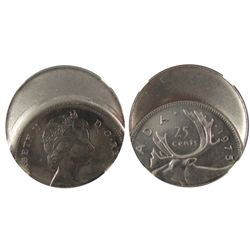 Mint Error Canada 1975 25¢ Struck 25% Off Center (Cap Strike) NGC MS64.
