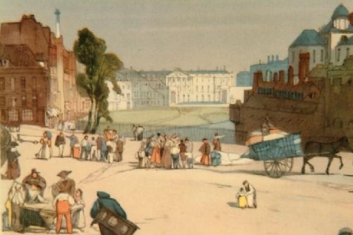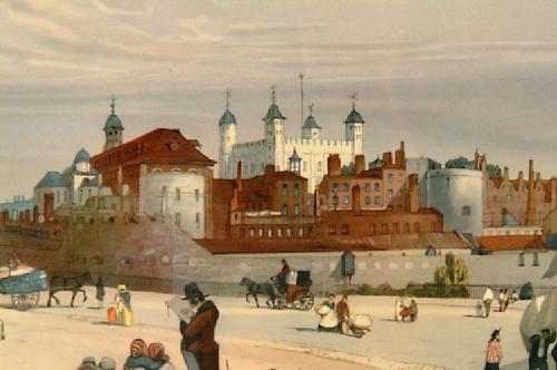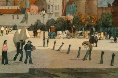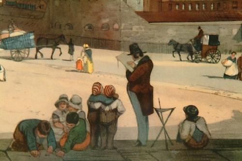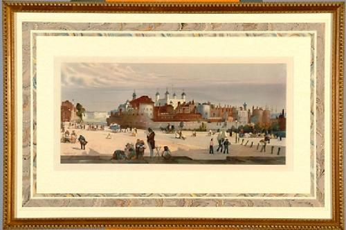 19th Century English Handcolored Engraving, label verso 8" by 18 3/4".