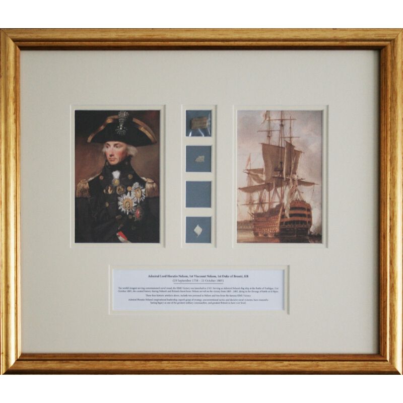 The collection is beautifully framed and double mounted to a size of 19" x 16", and includes images of Lord Nelson and HMS Victory. At the base of the frame is a description of the collection and full provenance is provided within an information pack that accompanies the collection.