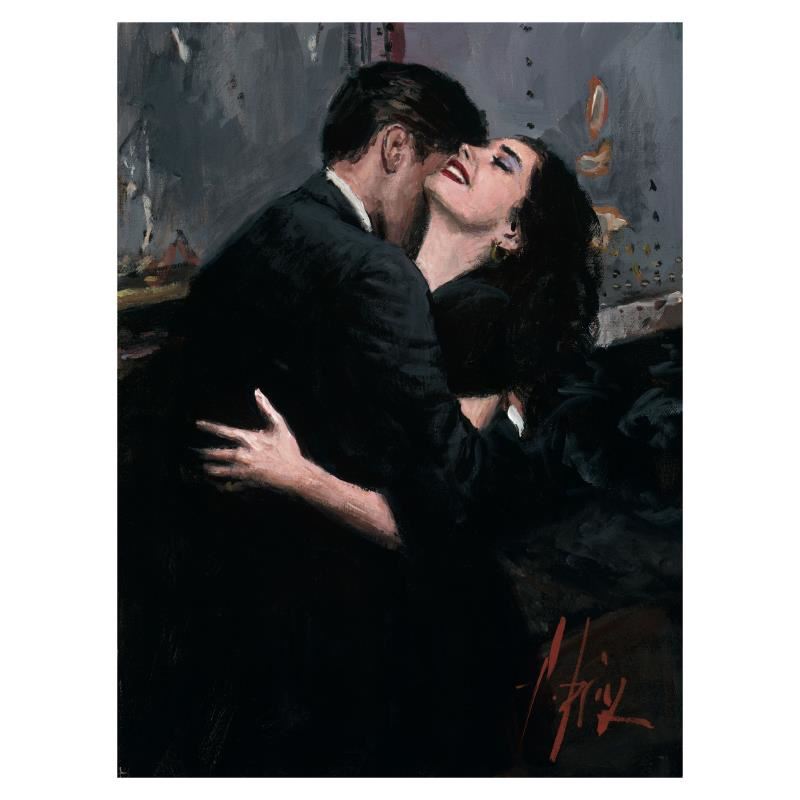 "The Train Station" is a hand embellished limited edition giclee on stretched canvas by Fabian Perez. The piece is numbered and hand signed by the artist and comes with a Certificate of Authenticity. Measures approx. 18" x 14" (image). Please allow 5 additional business for items that include canvas stretch or framing.