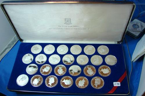 The Treasure Coins of the Caribbean 25 different Sterling Coins w/ctfs. & case
