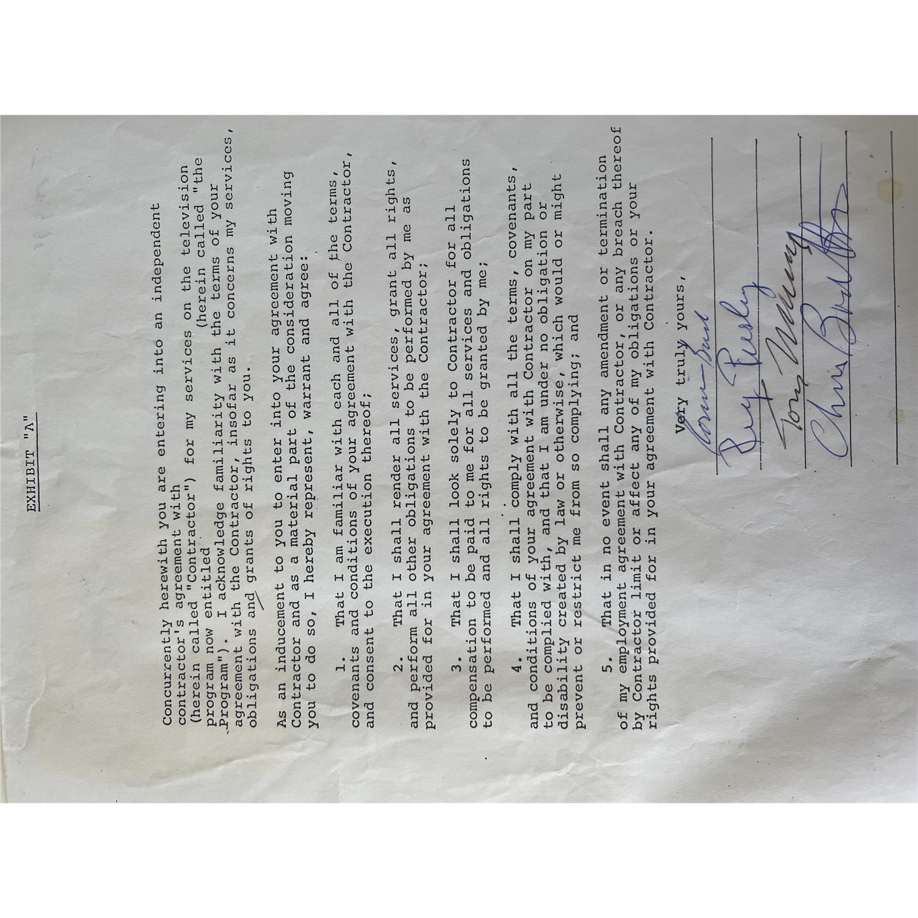 The Troggs signed contract autographed by Chris Britton,