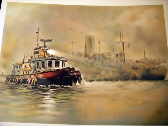 A wonderful piece for boatsman. An original lithograph signed and numbered. Agai a rare piece to find anywhere. Kelly is a well known artist and his pieces are all over the world.. A real favorite by boat lovers. 15" x 19"