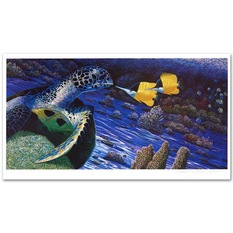 "The Turtle and the Butterfly" is a limited edition mixed media on paper by Robert Lyn Nelson, numbered and hand signed by the artist! Includes Certificate of Authenticity! Measures approx. 34" x 20" (with border), 30" x 15" (image).