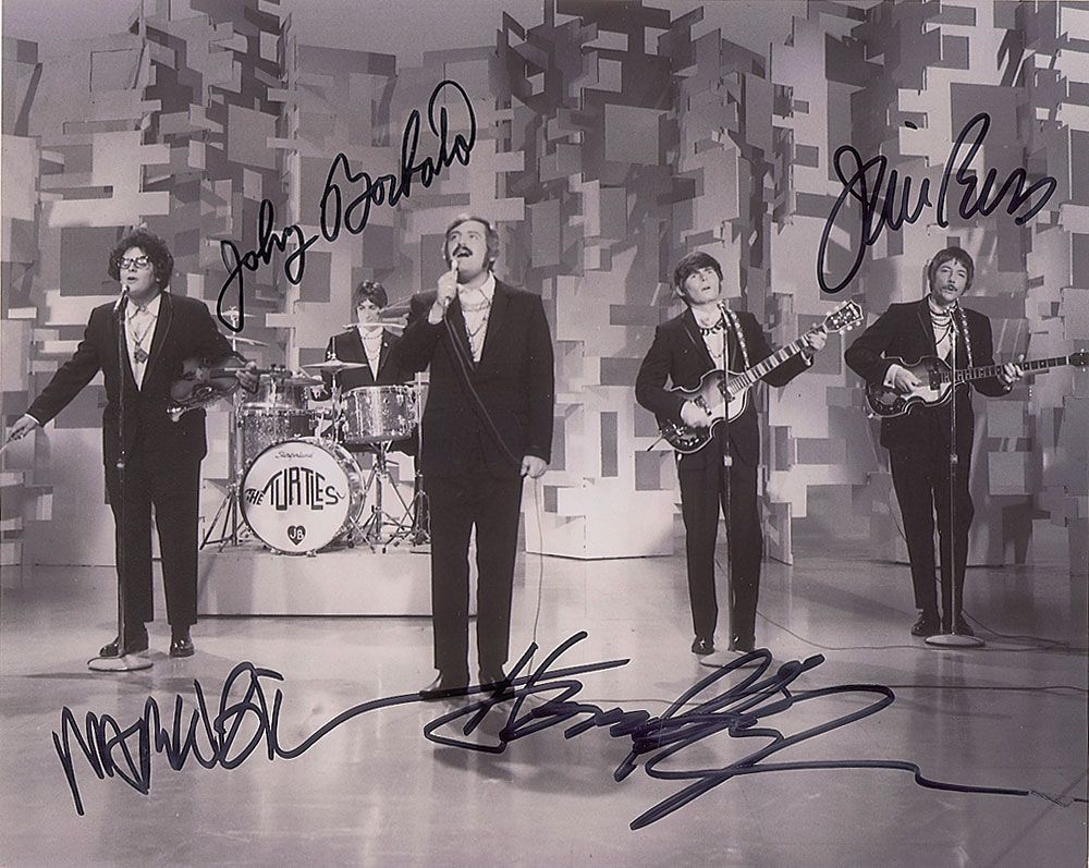 Glossy 10 x 8 photo of the Turtles performing on the Ed Sullivan Show, signed in black felt tip by Mark Volman, Howard Kaylan, Jim Pons, and Johny Barbata. In fine condition.