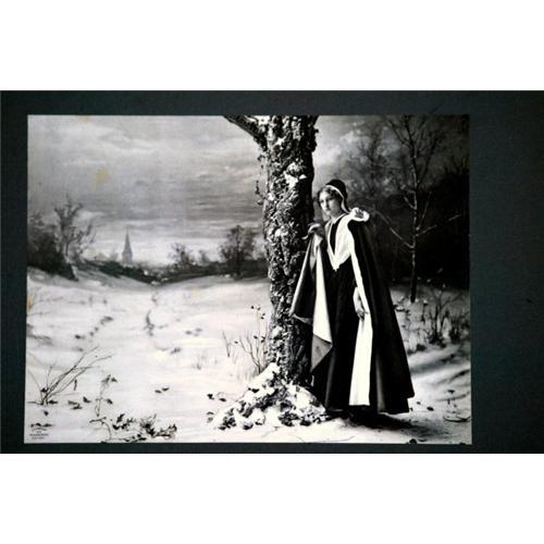 This is a very good print of a lady standing in the snow. In the corner is a stamp, The Ullman Mfg. Co., NY, 1889. It's glued to a poster board. No condition problem that I can see. A really interesting picture with great contrast and composition.